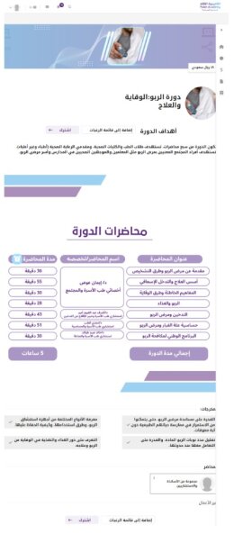 1. الدورة تتكون من عدد المحاضرات، رقم المحاضرة، اسم المحاضر/التخصص، ومدة المحاضرة (ساعات أو دقائق).