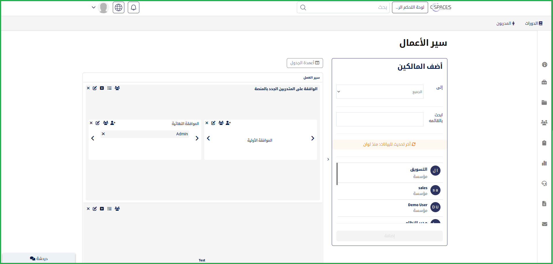 اضغط على تبويب سير الأعمال من الشريط الجانبي لفتح صفحة سير الأعمال.