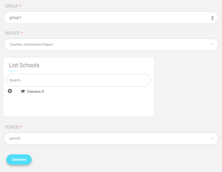 4. Choose a report to display, for example, “teachers Achievement Report”.