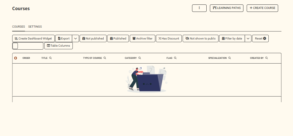 Through the Courses Settings section, you can specify the archiving of the courses and whether to show the categories flow in the home page or not. Moreover, you can force the packages and learning path flow, in addition to showing courses and courses calendar.